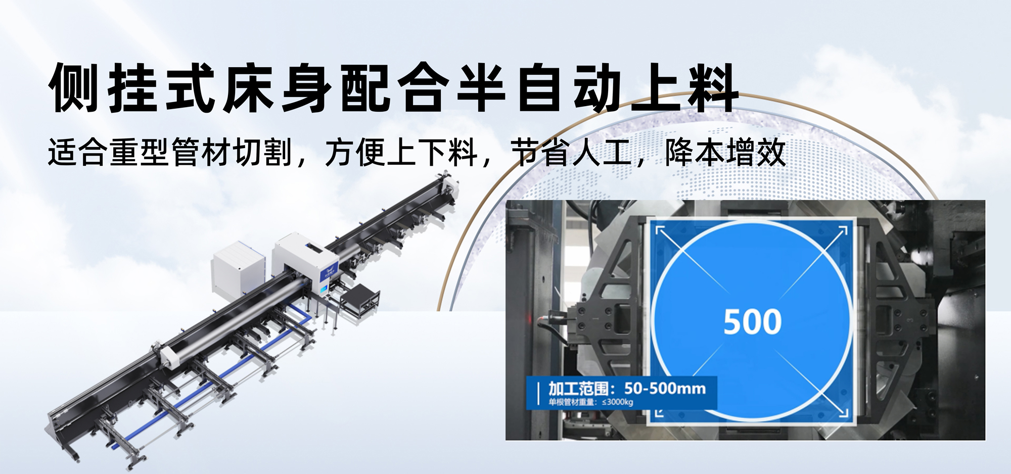 適合重型管材切割,方便上下料,節省人工,降本增效